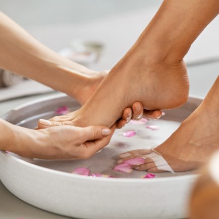 Gönnen Sie sich eine entspannende Fußmassage, die Ihre Füße belebt und Ihnen ein Gefühl der Leichtigkeit schenkt.